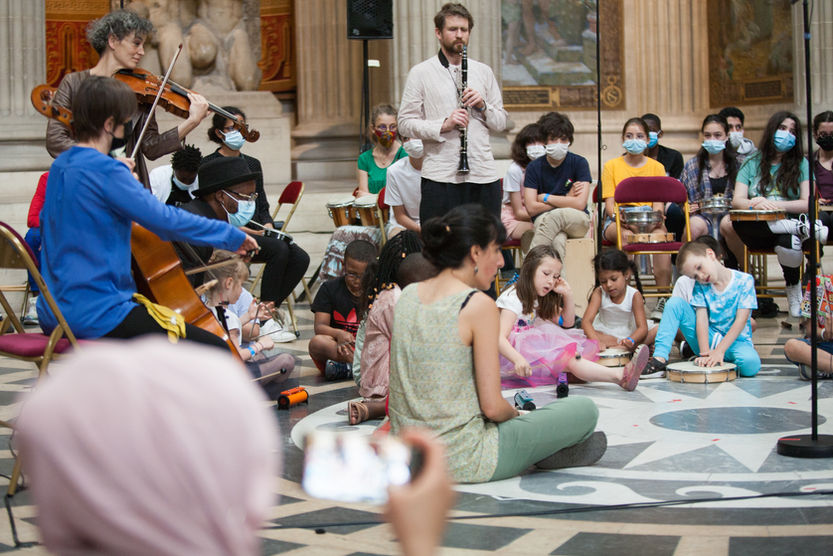 Chaque cycle d’ateliers se concluait par un concert public, joué dans des conditions professionnelles. En 2021 et 2022, les concerts se sont tenu dans un lieu unique : le Panthéon. Ces moments forts témoignaient de l’énergie collective et de l’engagement des participant·e·s, offrant au public une performance unique et sensible.